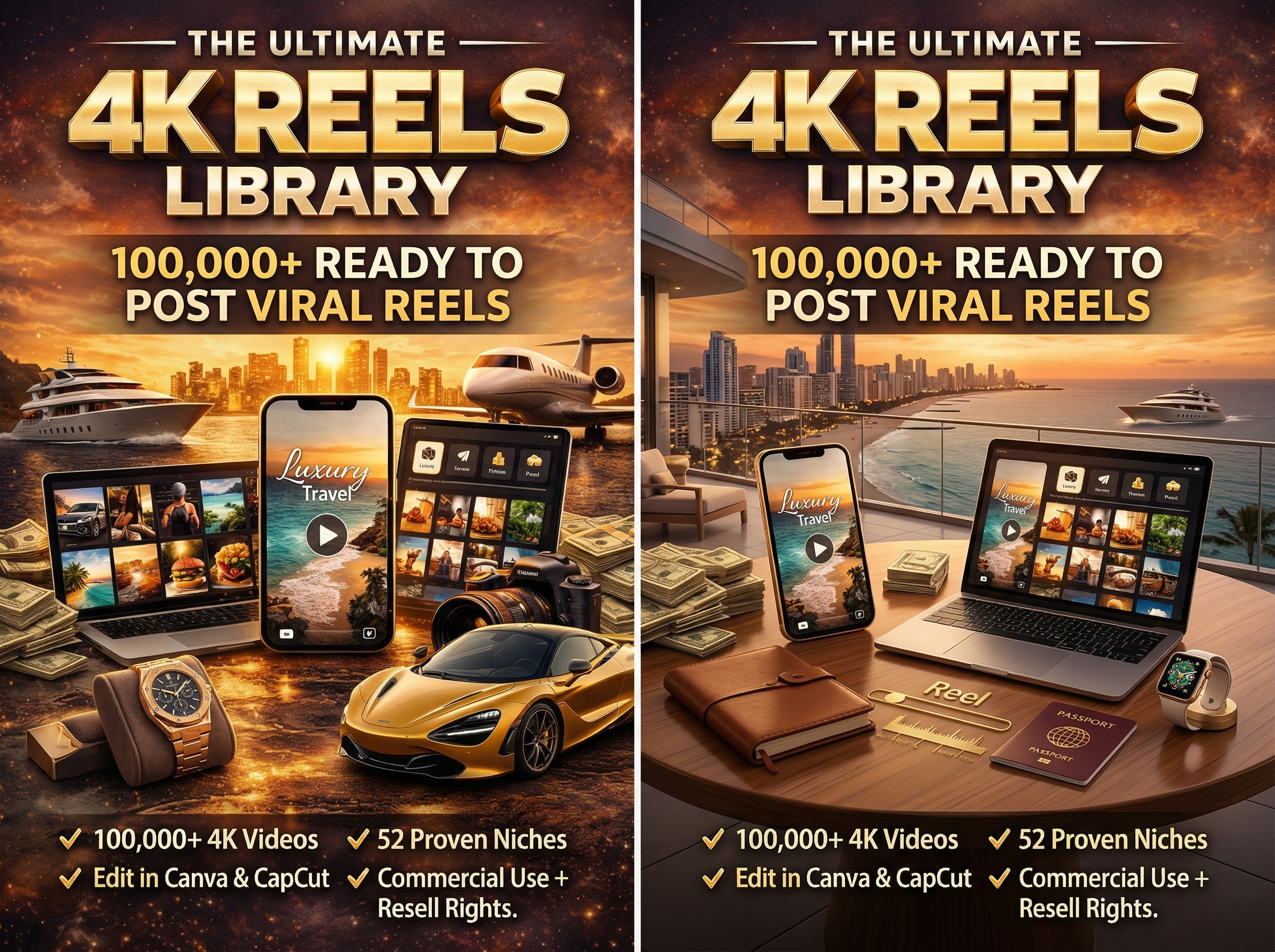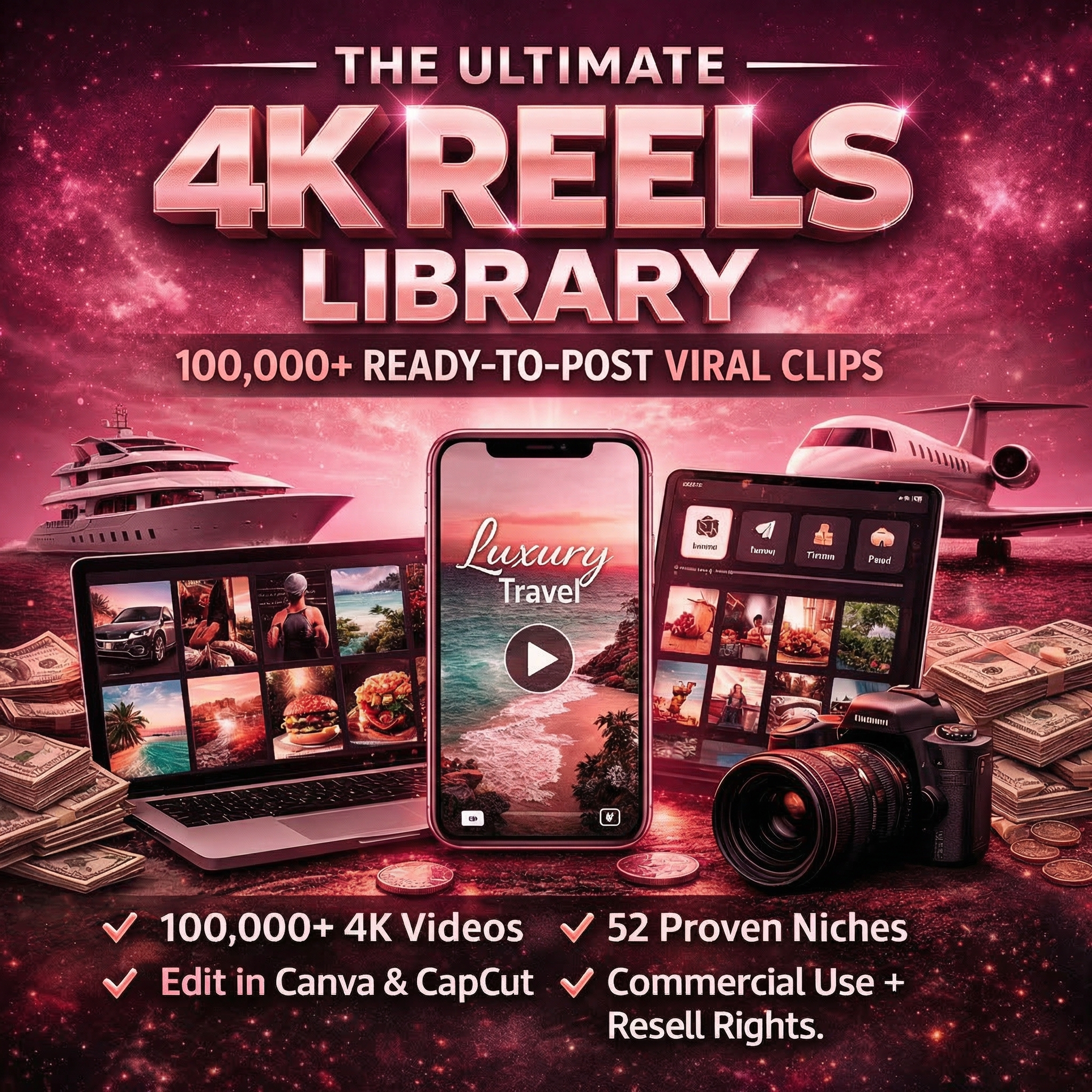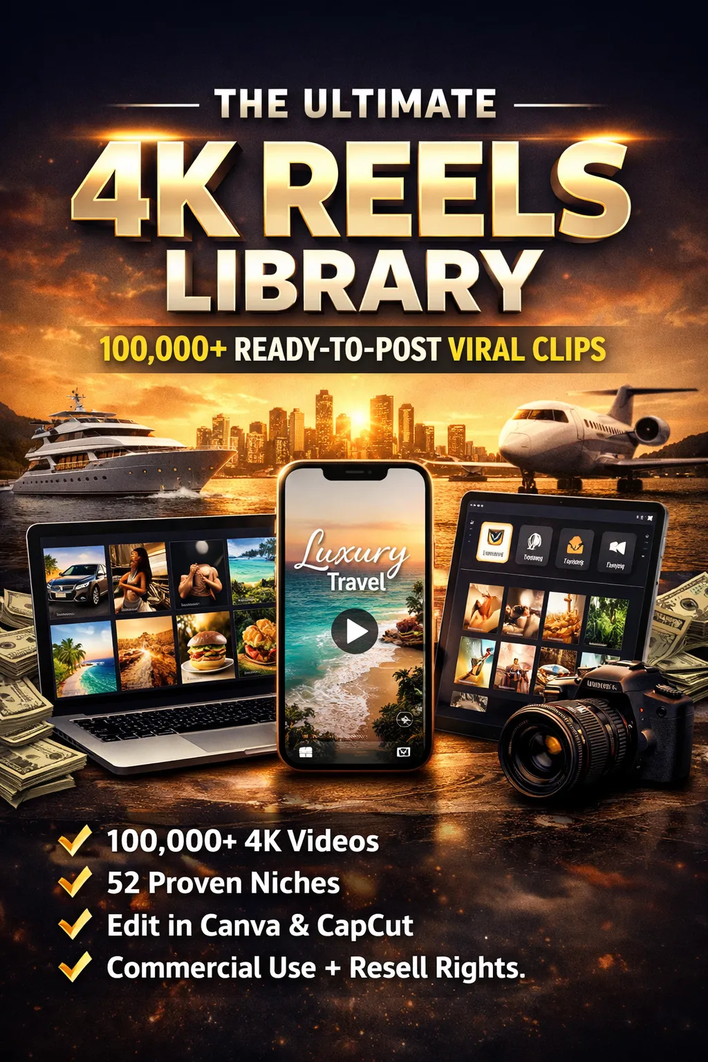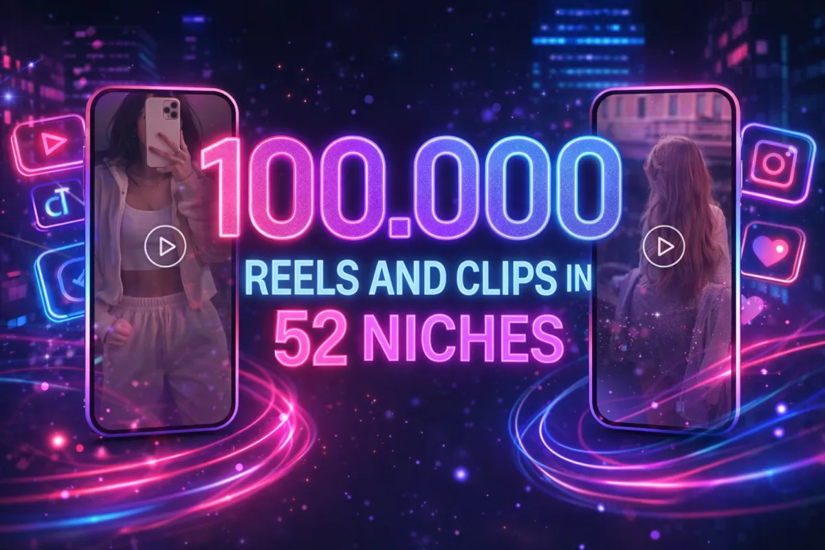 Inside, you get 100,000+ ready-to-post reels across 52 viral niches.